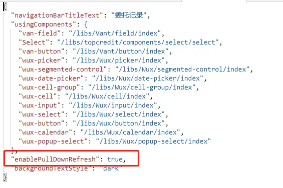 这里要特别注意,一定要在json中加入这样一行代码,不然上拉触底是没法触发的: