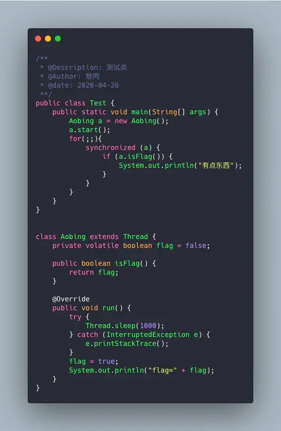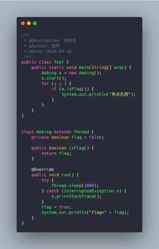 你会发现,永远都不会输出有点东西这一段代码,按道理线程改了flag变量,主线程也能访问到的呀?