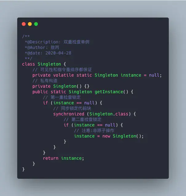 - volatile可以在单例双重检查中实现可见性和禁止指令重排序,从而保证安全性。