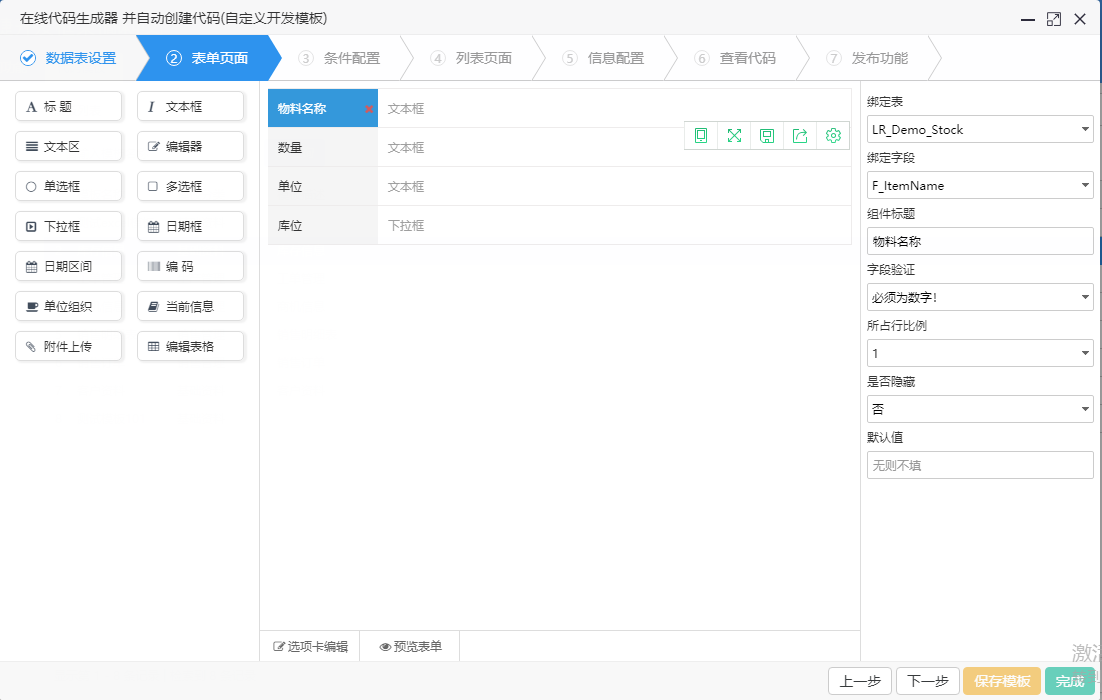 力软快速开发平台的操作界面如下图,左侧为可视化组件,只需要拖拽即可实现业务表达搭建,右侧为组件相关属性,可灵活配置,实现不同业务需求。