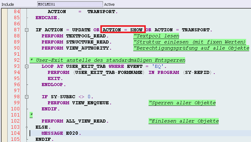 we can find the location where this error message is raised by this tip and know the error is caused since we didn’t specify any action like UPDATE, SHOW or TRANSPORT.