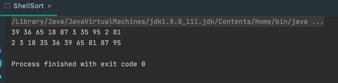 该方法实质上是一种分组插入方法 比较相隔较远距离(称为增量)的数,使得数移动时能跨过多个元素,则进行一次比[2] 较就可能消除多个元素交换。D.L.shell于1959年在以他名字命名的排序算法中实现了这一思想。算法先将要排序的一组数按某个增量d分成若干组,每组中记录的下标相差d.对每组中全部元素进行排序,然后再用一个较小的增量对它进行,在每组中再进行排序。当增量减到1时,整个要排序的数被分成一组,排序完成。 一般的初次取序列的一半为增量,以后每次减半,直到增量为1。 给定实例的shell排序的排序过程 假设待排序文件有10个记录,其关键字分别是: 49,38,65,97,76,13,27,49,55,04。 增量序列的取值依次为: 5,2,1 ##希尔排序代码如下: