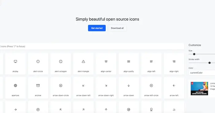 Feathericons是另一个非常漂亮和干净的图标库,包含282个SVG图标。默认情况下,它仅以SVG为主要格式,但这也没关系,因为这是目前推荐的图标使用方式,因为它是最快的。