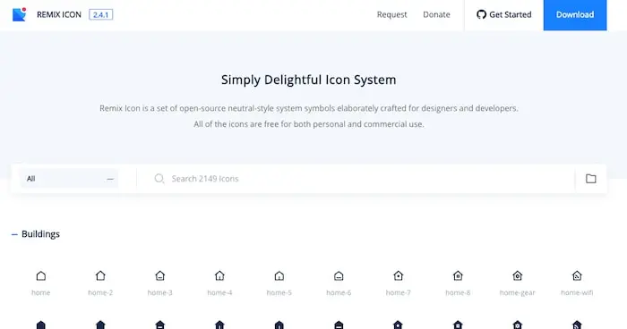 Remix Icon是一个Apache License下的2149个漂亮的开源图标大集合。有各种各样的图标可供选择,例如业务,通讯,财务,地图等等。绝对值得一看。