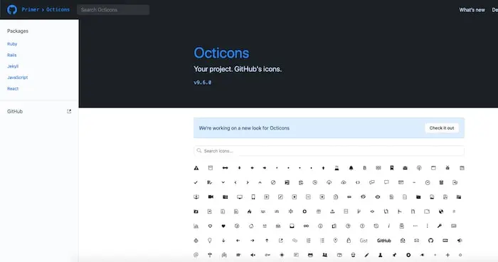 Octicons的一个巨大优势是,你还可以在React,Ruby,Rails,Jekyll和Javascript中将它作为即用型软件包获得。这是你可以用来开始使用Octicons的所有软件包。