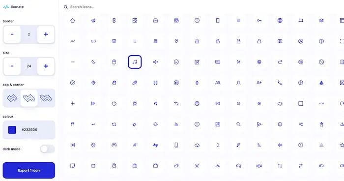 我喜欢在下载图标之前配置图标的大小、笔画宽度和颜色。你还可以通过单击网站右上角的月亮图标来切换明暗模式。