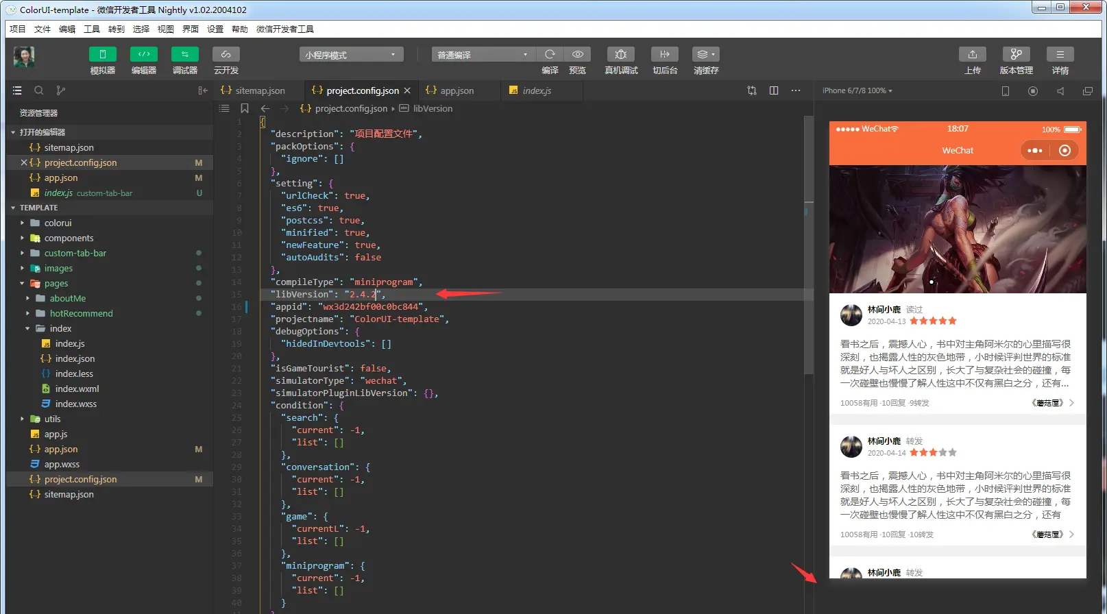 开发工具:微信开发者工具Nightly v1.02.2004102