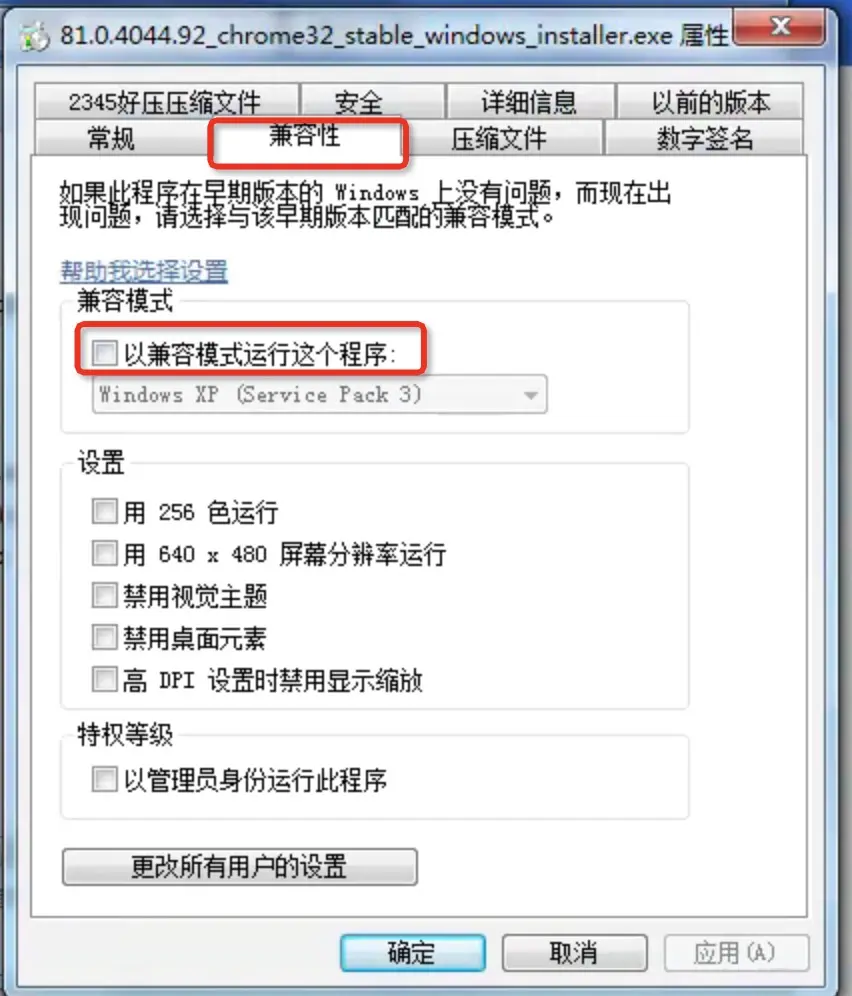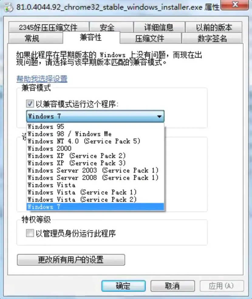 3、在属性里面,我们可以看到常规,兼容性,安全,详细信息等设置,我们关注兼容性,点击兼容性选项卡,在兼容性设置里面,我们看到有一个以兼容性运行这个程序,我们将其前面的框勾选上