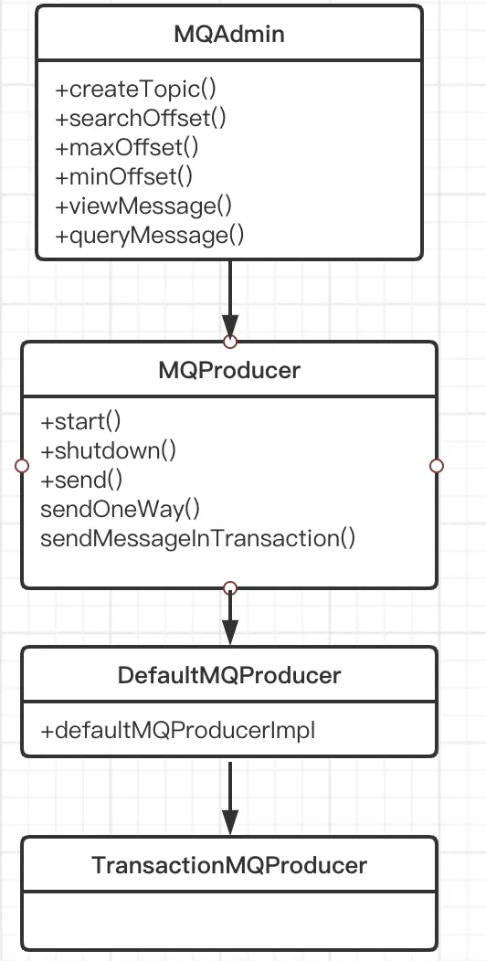 如图,生产者的默认实现是DefaultMQProducer,在DefaultMQProducer中有一个成员变量DefaultMQProducerImpl,里面实现了生产者的很多方法,可以说是生产者的具体实现类。