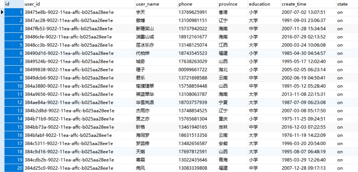 我们当前有一个业务需求:有一张数据表test_user,当中存储学生信息。