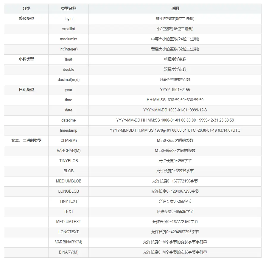 5. MySql 有哪些数据类型