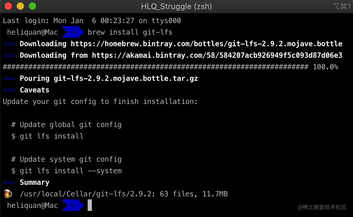 Step 1:通过 Homebrew 安装 Git LFS