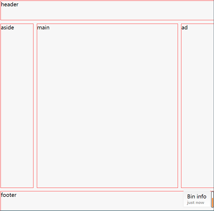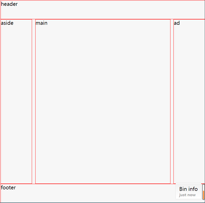 .来表示该空区域,如:grid-template-areas: "header header header" "aside . ad" "footer footer footer" } -
