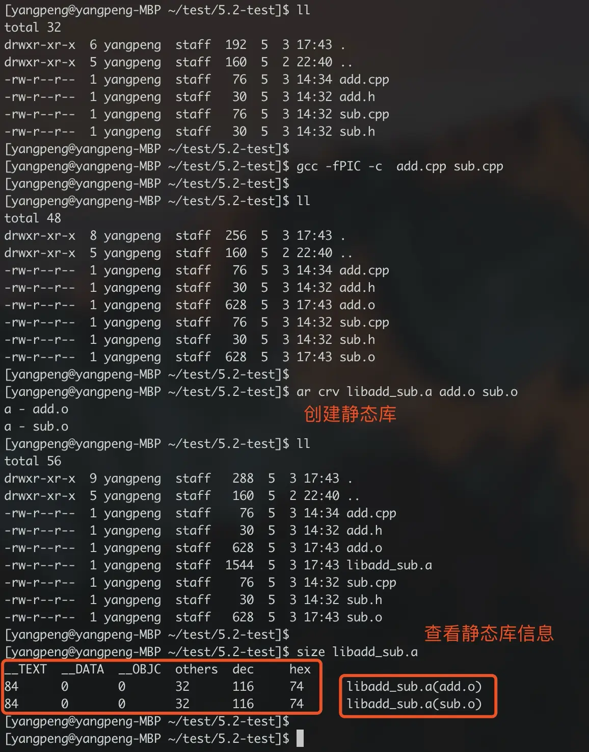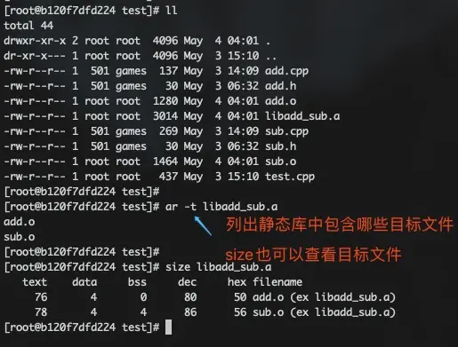 ar crv 静态库名 <目标文件列表>; - 可以列出静态库包含的目标文件