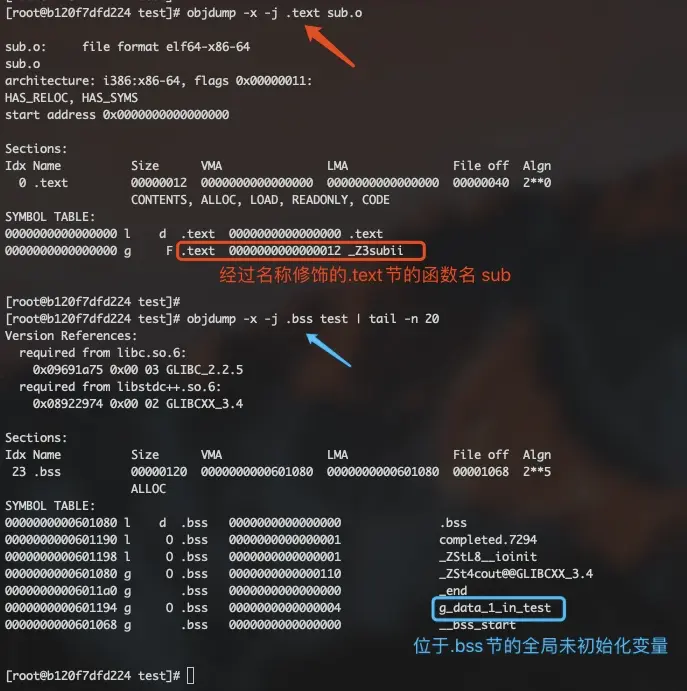 objdump -C <二进制文件路径>,与nm -C <二进制文件路径>输出完全相同 - 查看节中的数据