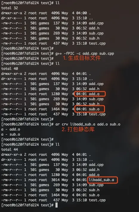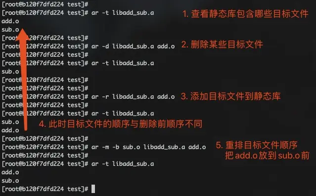 ar -t 静态库名; - 可以移除静态库中某些目标文件