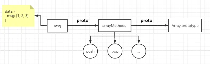 对于大部分现代浏览器都会走到 protoAugment,那么它实际上就把 value 的原型指向了 arrayMethods,arrayMethods 的定义在 src/core/observer/array.js 中: