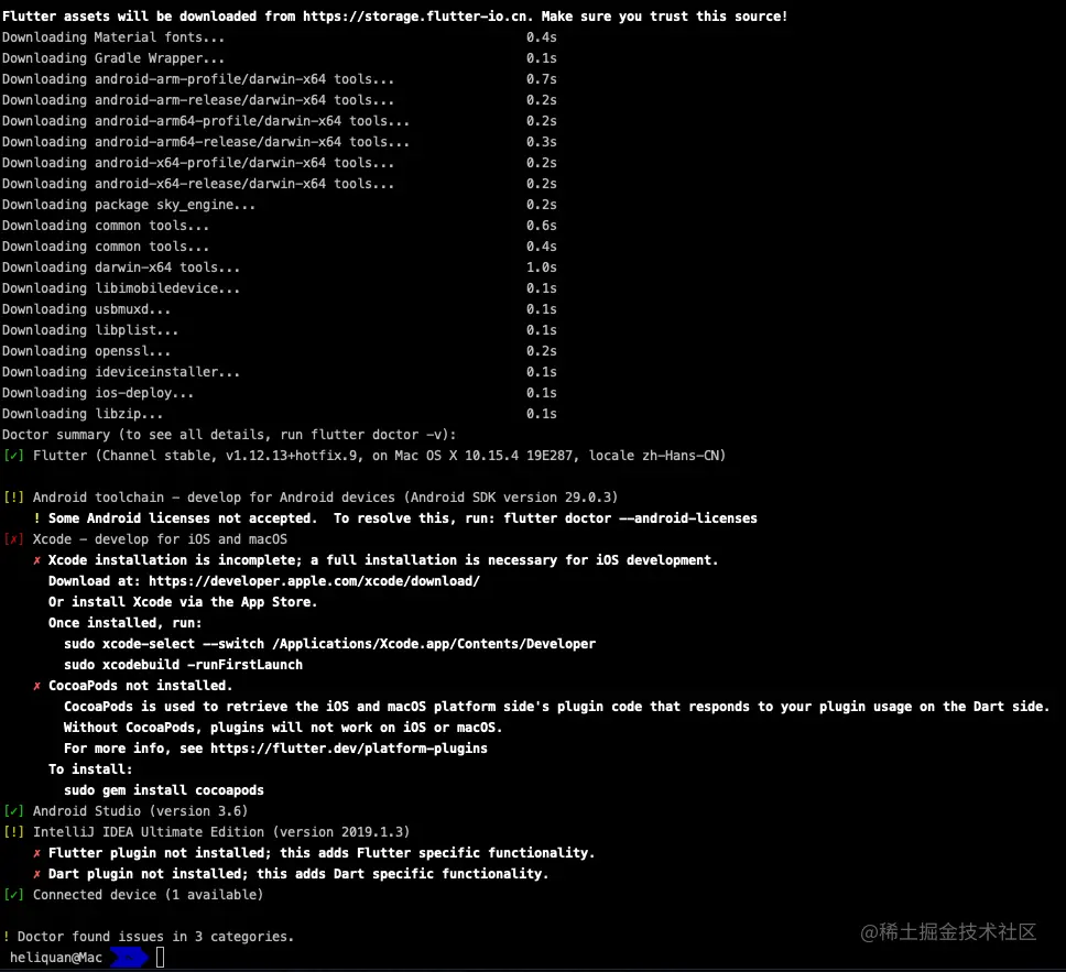 5. 再次通过 flutter doctor 检测 Flutter 开发环境