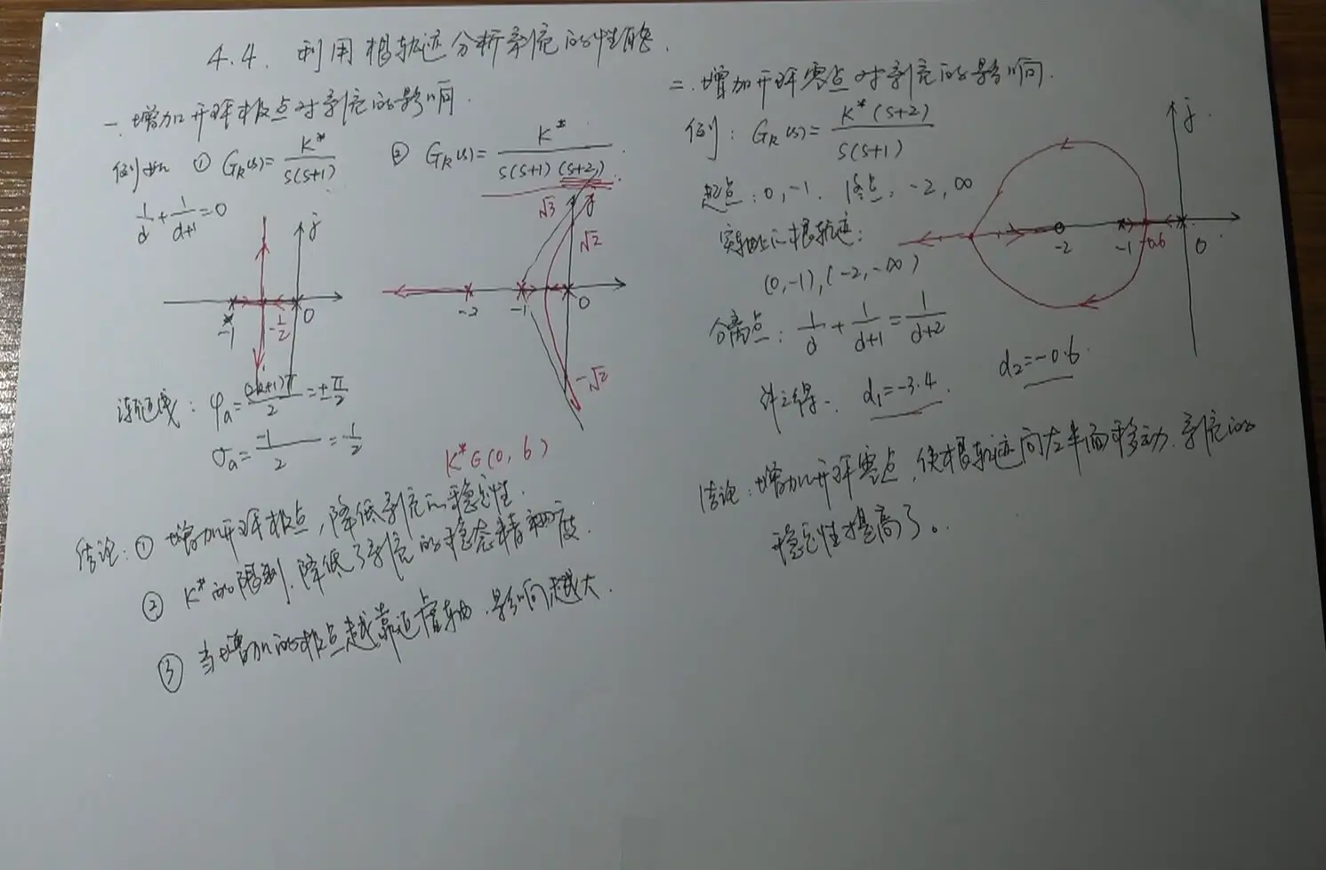 ↑:②中增加开环极点后,若要系统稳定,则K*须有限制,从原先的∞限制到(0,6)