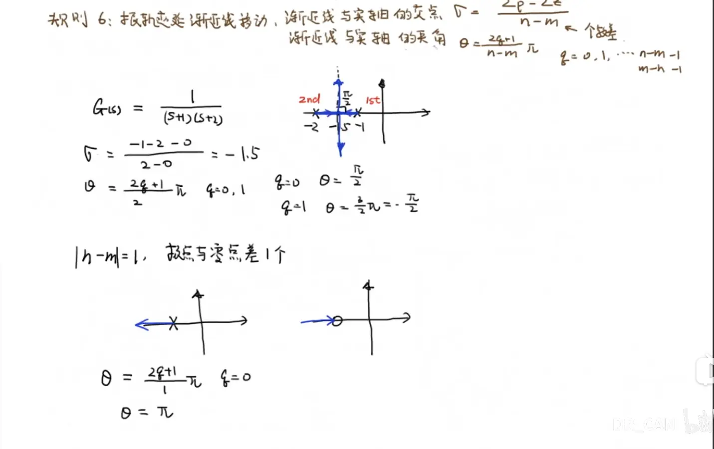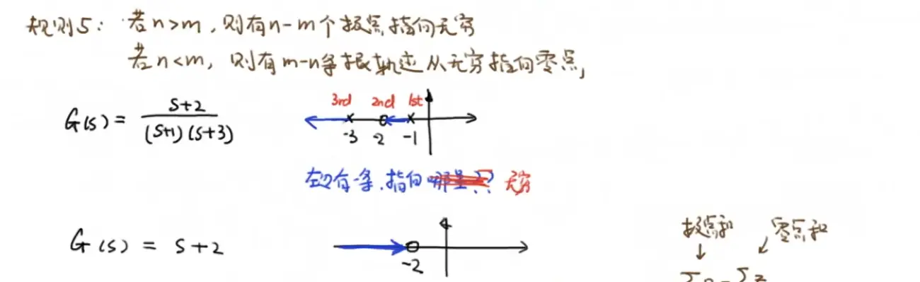 Rule1:根轨迹的起点(K=0)是开环极点,终点(K=∞)是开环零点或无穷远处;有n条根轨迹(一般是n≥m,取max(n,m));有n-m条渐近线