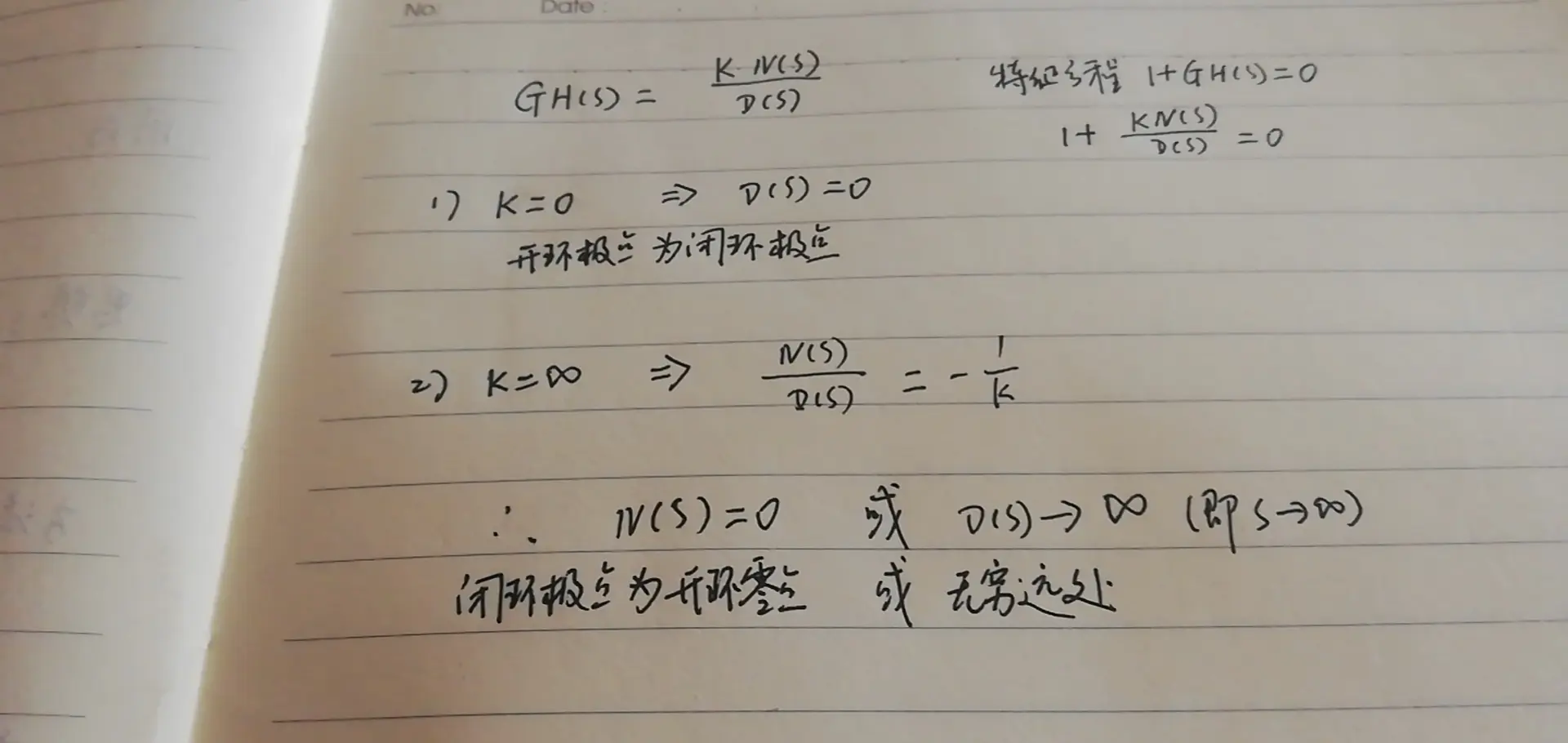 注:一个K值对应n个极点 (n是开环极点的个数/根轨迹的条数/闭环极点的个数);因为1+GH=0给定一个K,由于s最高次数为n,所以有n个解