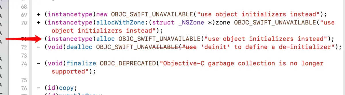想要明白一段代码究竟做了什么,最直接就是看底层源码解决,但是直接点击alloc会发现来到这里,看不到底层代码,有四种方法解决