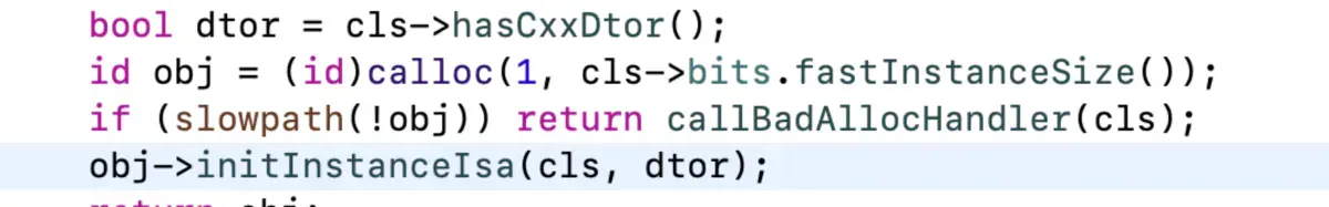 obj->initInstanceIsa(cls, dtor);它做的事就是把对象和类通过isa的方式进行绑定,isa中包含大量的类信息,这就相当于给开辟的这片空间指定一个拥有者。