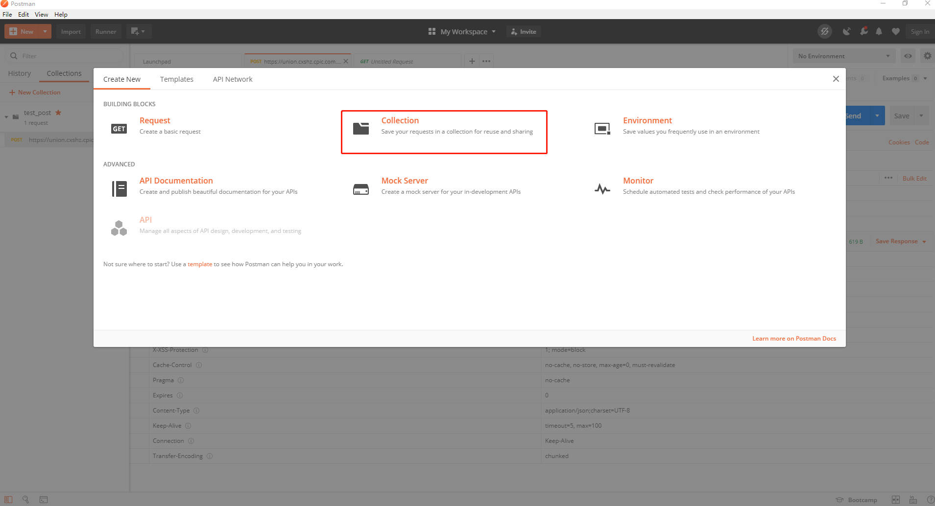 选择左上方的NEW 创建一个collection并且命名