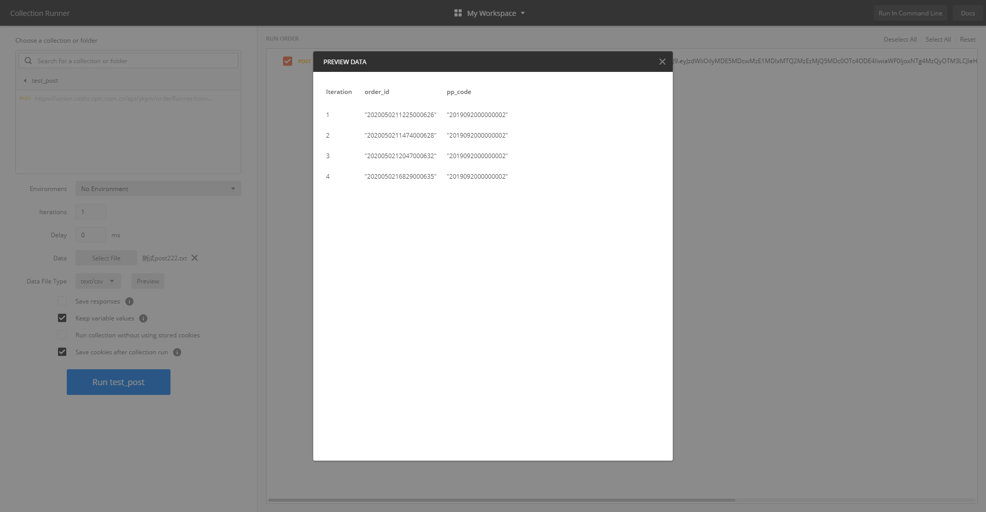 在处理大量多个不同参数的请求需要使用到参数化请求,如下介绍如何通过Postman搭建参数化批量请求