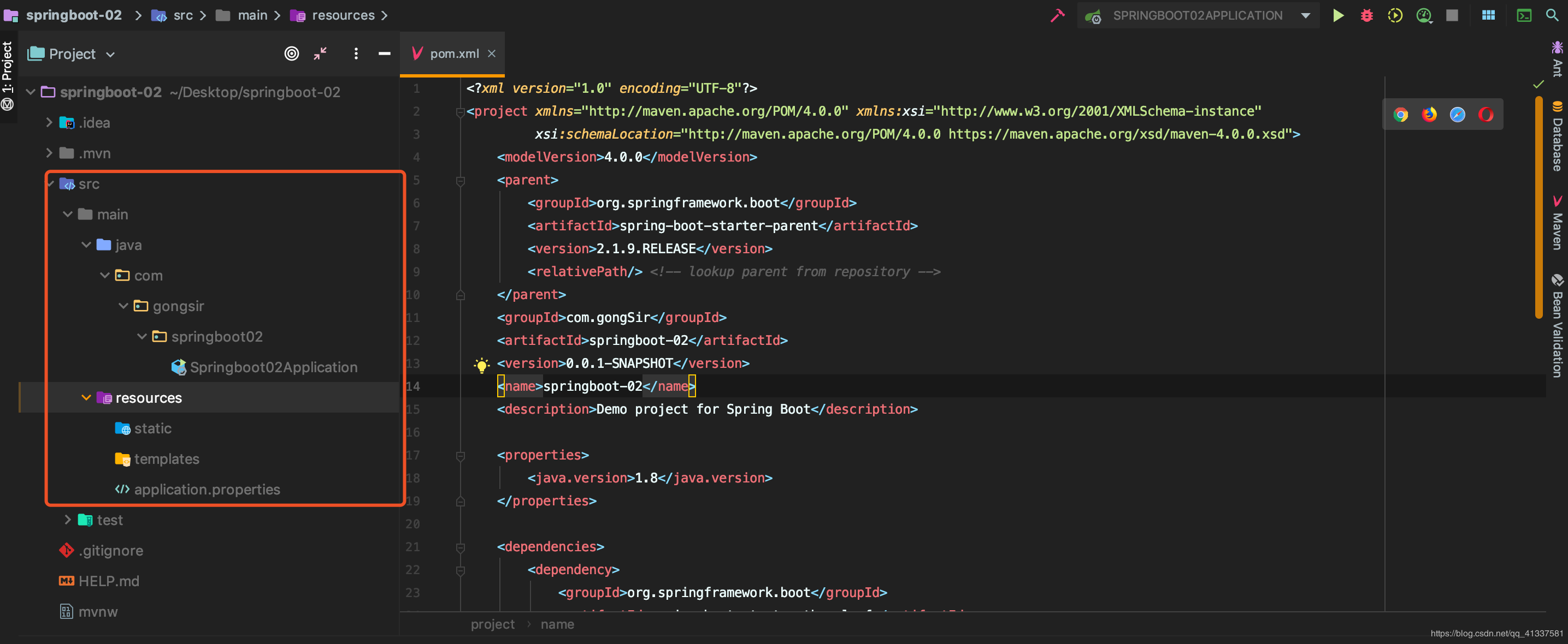 创建完成后,IDEA自动在pom中加入了web和Thymeleaf依赖管理,pom.xml: