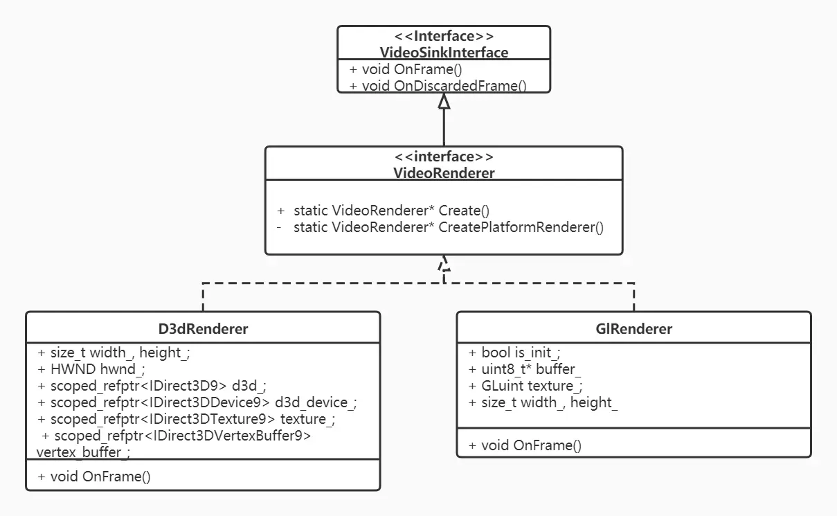 WebRTC中提供的渲染类相关的UML类图: