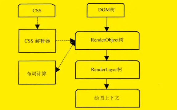 接下来就是Webkit借助 css 和 dom 树构建RenderObject树直到绘图上下文。