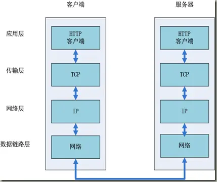众所周知 互联网内各网络设备间的通信都遵循TCP/IP协议,利用TCP/IP协议族进行网络通信时,会通过分层顺序与对方进行通信。分层由高到低分别为:应用层、传输层、网络层、数据链路层。发送端从应用层往下走,接收端从数据链路层网上走。如图所示: