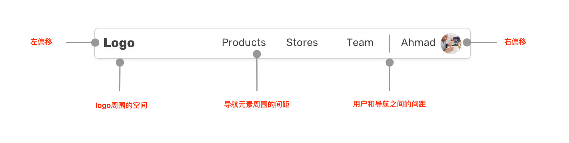 在这种情况下,标题具有logo,导航和用户个人资料。你能猜出CSS中的间距应该如何设置吗?好吧,让我为你添加一个骨架模型。