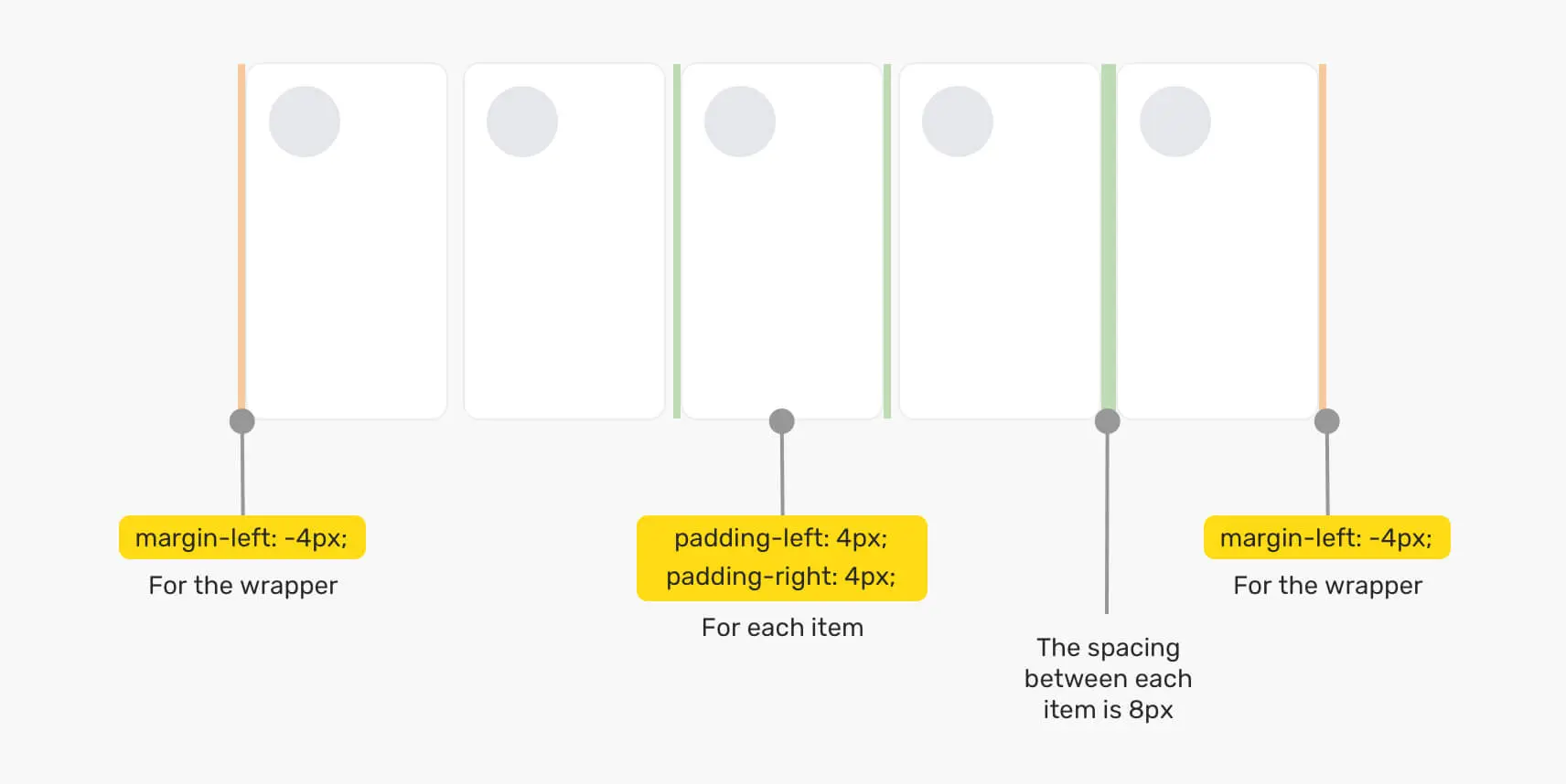 我使用 padding 来填充内部间距,使用 margin 来填充外部间距。很简单,不是吗?但是,当处理具有许多细节和子元素的组件时,这会变得越来越复杂。
