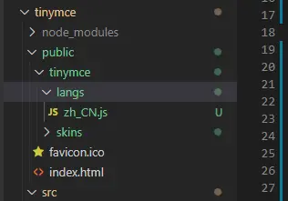 在node_modules 中找到 tinymce/skins目录,把整个目录复制放到自己项目的public目录下的文件夹tinymce(新建的一个文件夹,方便管理),然后再把下载的语言包解压放到这个文件夹下。