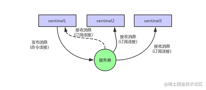 - 每个Sentinel也会从_sentinel_:hello频道中接收其他Sentinel发来的消息,并根据这些消息为为他Sentinel创建对应的实例结构,以及命令连接