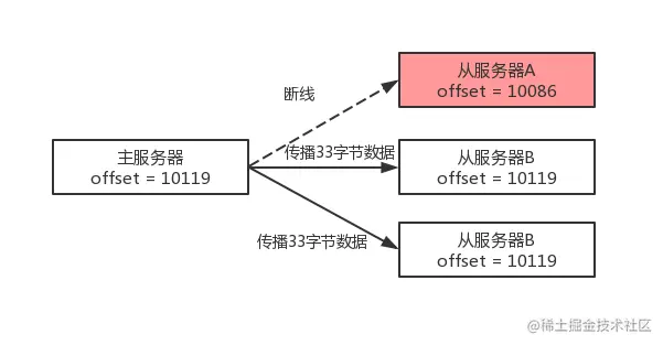 如果发现偏移量不一致时,如何判断接下来要进行完整重同步 or 部分重同步。主服务器又如何补偿掉线期间丢失的数据呢?与复制积压缓冲区有关。