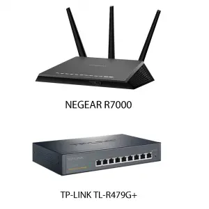 如果家庭住房面积较大,建议用TP-LINK TL-R479G+加NETGEAR R7000配合使用。TPLINK TL-R479G+是企业级的千兆路由器,非常稳定,功能丰富且价格不贵,总共9个端口,WAN口可以扩展4个,可以做入户主路由器,进行拨号和核心路由。而NETGEAR R7000可作为侧路由,通过AP模式上联到主路由,主要提供WiFi热点和家庭媒体服务器功能。如果WiFi覆盖不足可以加一个迷你AP作为补充。