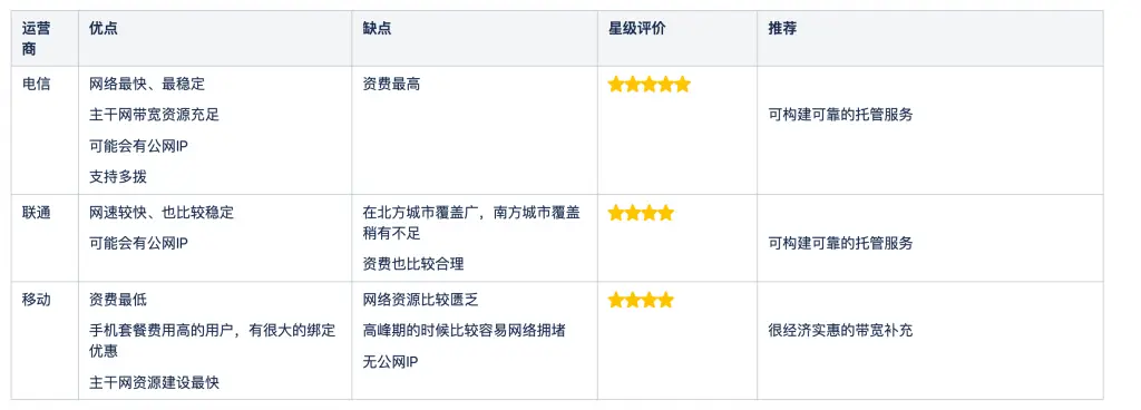 综上,如果需要构建家庭托管服务,优选电信或者联通。