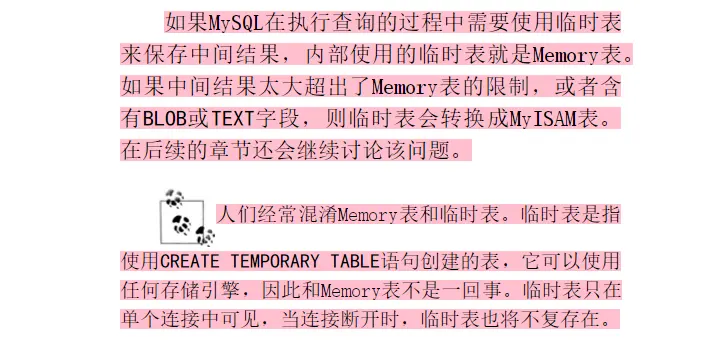 需要快速访问数据,数据不重要,重启丢失也没关系,比MyISAM快一个数量级,所有数据存在内存中,不需要磁盘I/O,重启后,表结构还在,数据丢失
