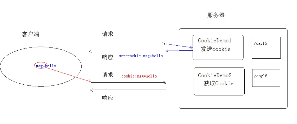 第二次请求时该数据会被放到请求头里面:cookie:msg=hello。服务器可以用封装好的