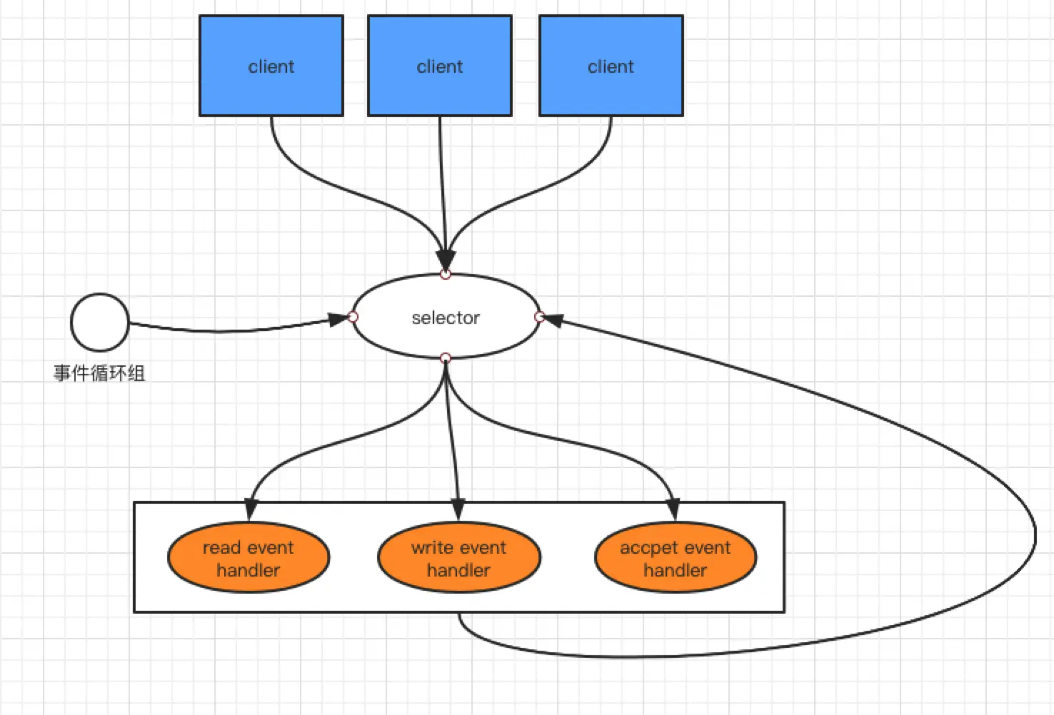 其中重要的角色为selector,新来的连接会将其通道注册到其中,利用一个线程去轮询所有注册在其上的连接,当有通道有新的事件响应(accept、read、write等)时交给相应的线程去处理。这样的模型好处是:只需要一个线程就能管理一组连接,当连接无事件时不会有线程阻塞问题。