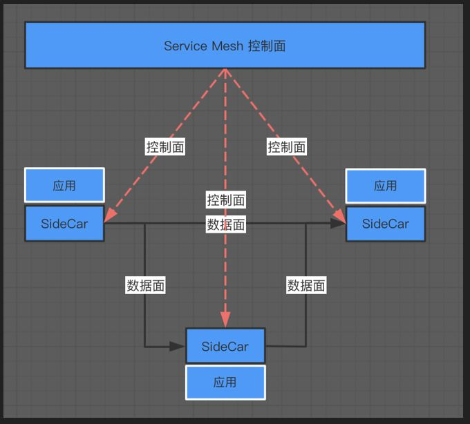 从上图中我们看到,控制面和数据面分离,应用在部署的时候,每个应用附带一个Side Car,这个Side Car是拦截每一个应用对外请求的。同时控制面的服务治理策略下到Side Car中具体的执行,这样的话,即使业务模块升级和服务治理的升级也能互不影响的,还能动态调整服务治理的规则和策略。