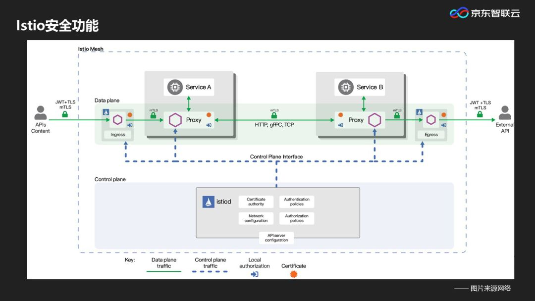 京东智联云研发token服务并集成到Envoy中;并研发黑白名单插件,方便服务方更细致的定义自己的安全策略。