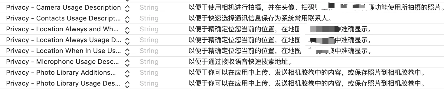 - 相关权限申请文案配置,这个影响审核结果,需要描述清楚申请这个权限是干啥的,以下仅供参考