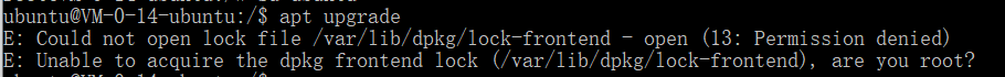 安全意识较高的小伙伴可能会抗拒直接在root下进行操作,但是在ubuntu账户下直接输入apt等命令行会被deny掉。