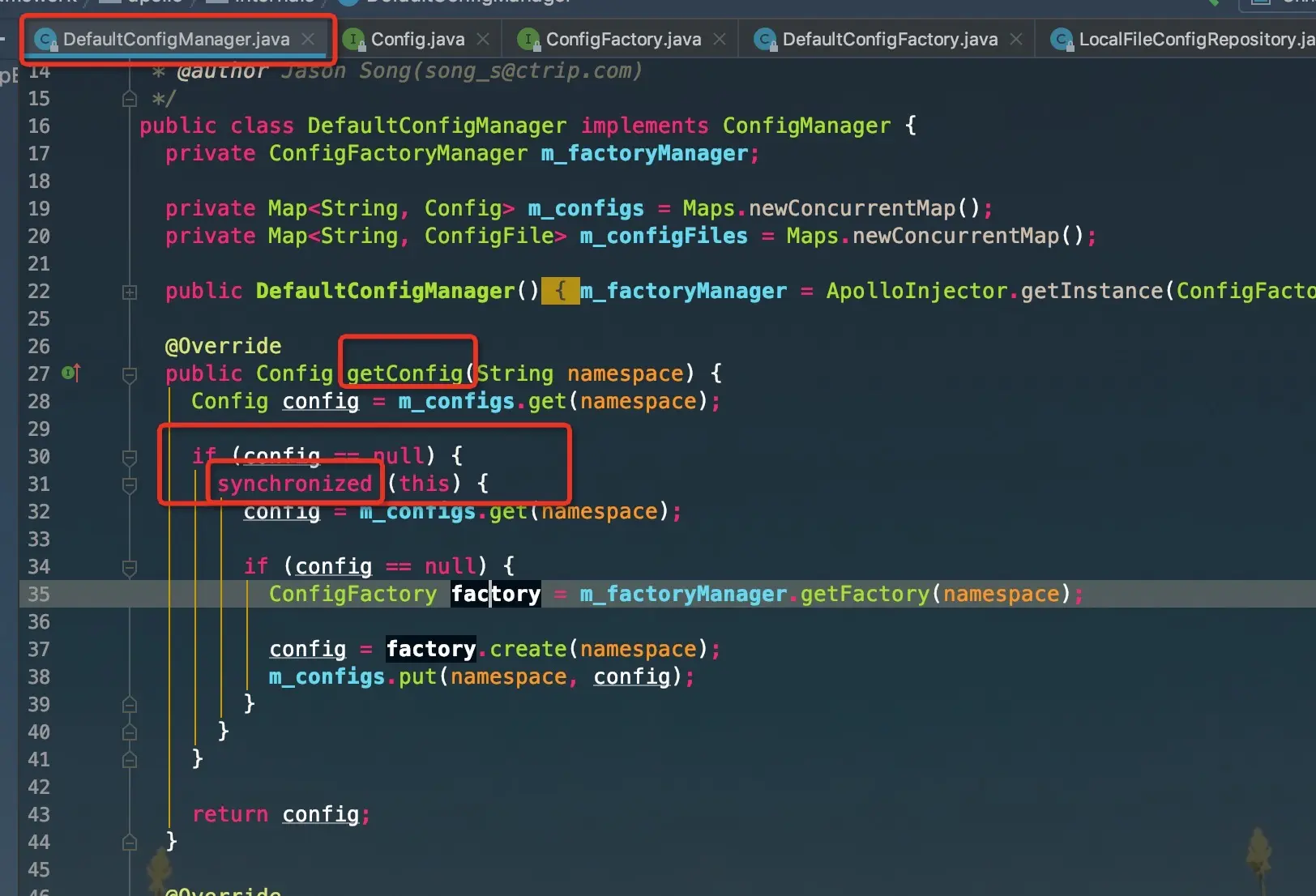 记一次压测问题 Echizen_1 2020-05-08 263 阅读1分钟 现象:接口压测,单节点qps只能到100操作:上机器拉下threadDump文件,分析发现大量线程执行在同一个地方检查代码发现是在获取Apollo配置检查Apollo配置,发现未发布namespace查看Apollo源码在获取配置信息的时候,如果namespace为空,则会加锁,影响性能~~发布配置后,压测达到1000,问题解决~~
