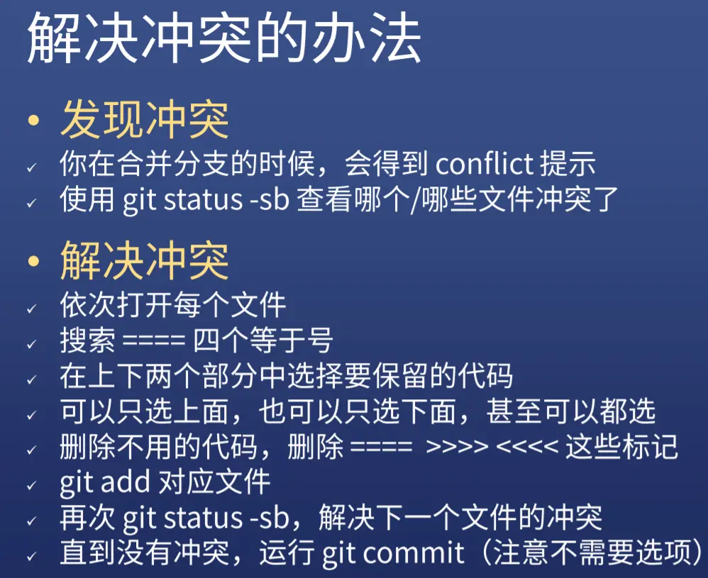 //如果发现有conflict提示,表示代码合并有冲突,解决冲突先查看冲突。