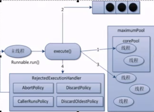 2.4 如果队列满了并且正在运行的线程数量大于或等于maximumPoolSize,那么线程池会启动饱和拒绝策略。